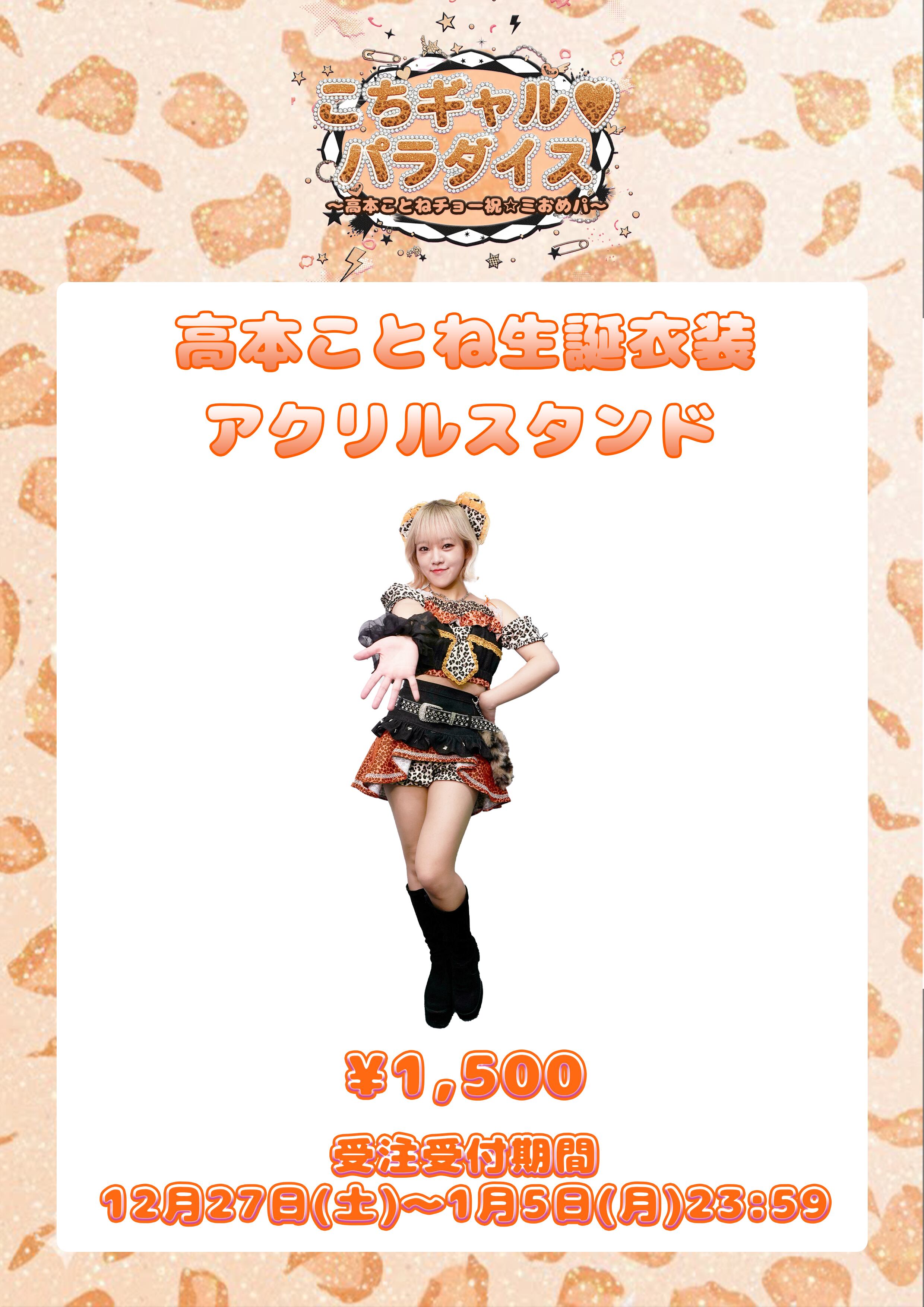 えすれあるアクリルスタンド(メンカラ×黒衣装)が新登場! 【商品詳細】 ・高本ことね 2025年生誕衣装アクリルスタンドキーホルダー 価格:¥1,500-(税込・送料別) ※完全受注販売となります 【受付期間】 2025年12月27日(土)~2026年1月5日(月)23:59 2月上旬より順次お届け予定 【ご注意事項】(必ずご確認頂き、ご納得の上ご購入下さい) ※注文確定毎に別途送料が発生します。複数の商品をご注文いただく場合は、買い物かごにまとめて注文の確定をお願いいたします。注文確定後に複数の注文を1つにまとめることはできませんので予めご了承ください。 ※複数のご注文をいただいた場合、商品をまとめて発送をさせていただく場合がございます。 ※数量限定につき無くなり次第終了とさせていただきます。 ※購入後のキャンセルは不可となります。